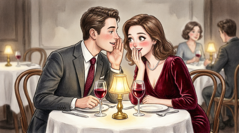 Every table around us had fallen silent. A waiter stood frozen near the bar holding a bottle of wine.