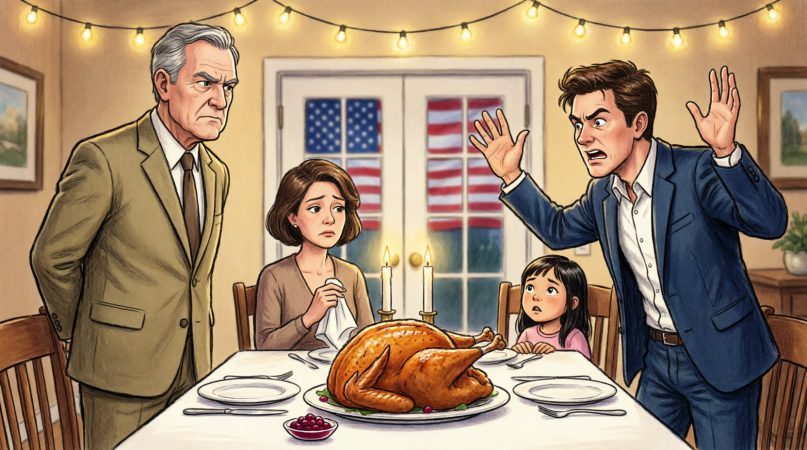 The question hung there. Around the table, reactions bloomed like flowers in stop motion. Jason’s fork stopped halfway to his mouth. Turkey suspended. Melissa’s eyes went wide, darting between Michael’s red face and my calm one. David studied his plate with sudden intensity. Other guests froze mid-motion, a photograph of discomfort. Jenny half rose from her chair. Dad, stop. Not now, Jennifer. Michael’s voice had edges. This doesn’t concern you. But, Grandpa, I said, not now. Michael’s face was crimson, neck veins visible. He leaned forward, palms still planted on my table.