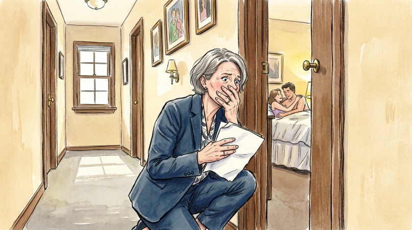 My mind, trained for thirty-two years to solve problems and find logical explanations, immediately scrambled to protect me. He’s on a Zoom call, my brain insisted. A client made a joke. Or maybe he brought the iPad upstairs and he’s watching a movie. But we had a strict rule about no screens in the bedroom. And that laugh—that breathy, echoing laugh—was not compressed by laptop speakers. It was bouncing off the drywall of our home.