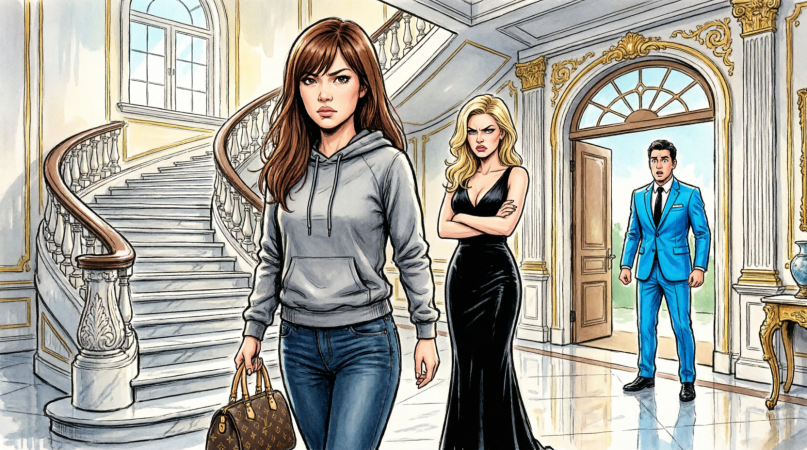 I stood there with her designer coat in my hand while she walked into my house as if it were hers: blonde, about 25 years old, wearing a dress that cost more than most people’s rent.