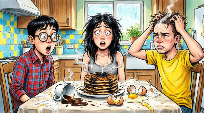 I took the flour, eggs, and milk. I mixed the batter in the big blue bowl my mother had given me when we moved. I added vanilla and a pinch of cinnamon, just the way Daniel liked it. I heated the pan, listened to the sizzle of the batter as it fell, and watched bubbles form on the surface of each pancake.
