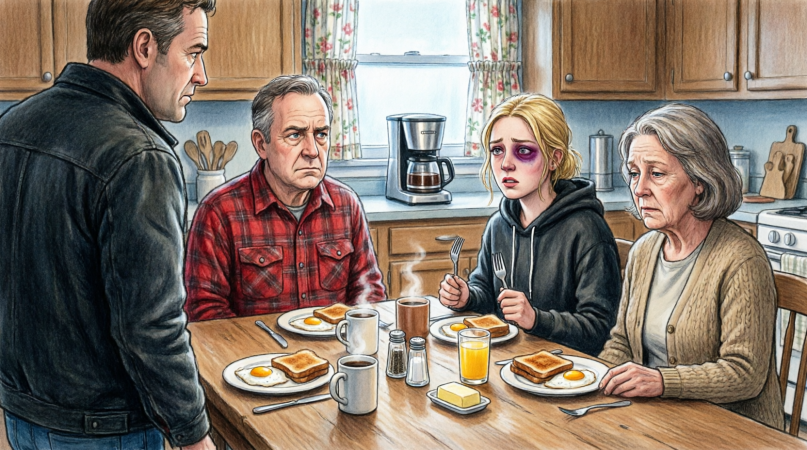 “What is this supposed to be,” Evan asks, his tone already defensive as he looks between us. Aaron does not stand, which is deliberate, and instead calmly says, “Looks like breakfast, but honesty would probably help more right now.”