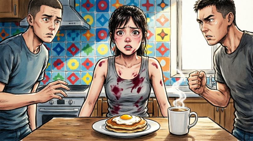 After my husband hit me, I silently continued preparing breakfast as if nothing had happened—until he came out and froze when he saw who was sitting waiting for him at the table…