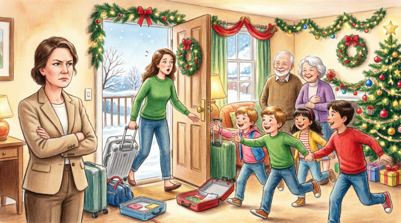 I stood there with the cold sneaking under my coat and my suitcase handle digging into my palm, waiting for the rest of the sentence. Maybe the part where she realized what she’d said and laughed it off. Maybe the part where she hugged me anyway.