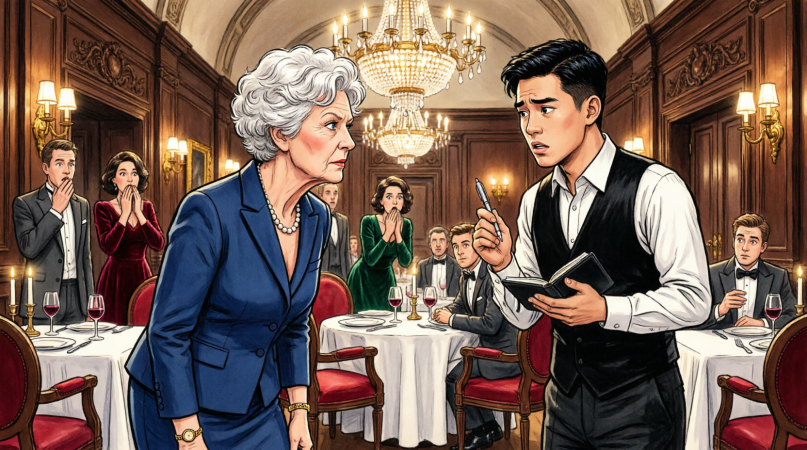 She turned to the waiter and added, raising her voice just enough to sound casual, but so everyone could hear, “We don’t provide extra food. Just water for her.”