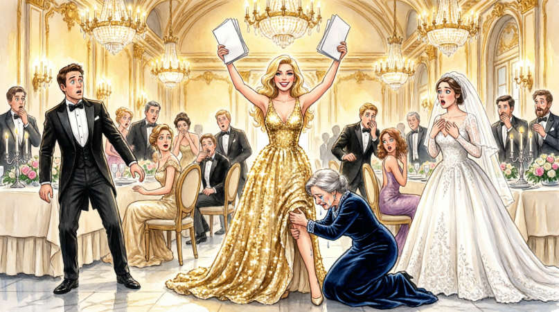 Standing in the bridal party line, holding a tightly bound bouquet of pale roses, I watched the audience nod in sympathetic reverence. I caught Patricia’s eye in the fourth row. My aunt was gripping the edge of her white folding chair so hard her knuckles were bone-white. She shook her head at me—a minute, desperate vibration. The storm was gathering, dark and heavy, right above our heads.