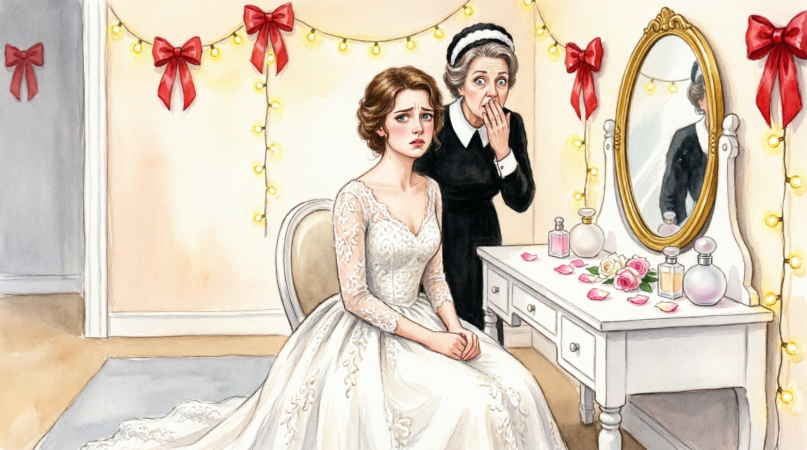 I stood paralyzed, heart pounding in my chest. Before I could speak, she widened her eyes and gestured for silence. Her look was deadly serious. A chill ran through me as I clutched my wedding gown. At that moment, I heard the footsteps of my new husband approaching.