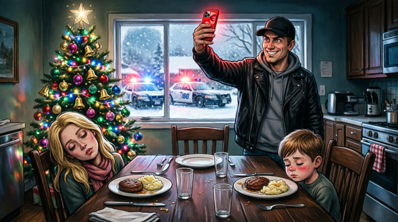My breath hitched. Panic surged. I clutched Evan to me, pulling him into the bathroom as I locked the door. The dispatcher’s voice was steady on the other end of the phone. “The officers are outside. Stay in the bathroom until they announce it’s safe.”