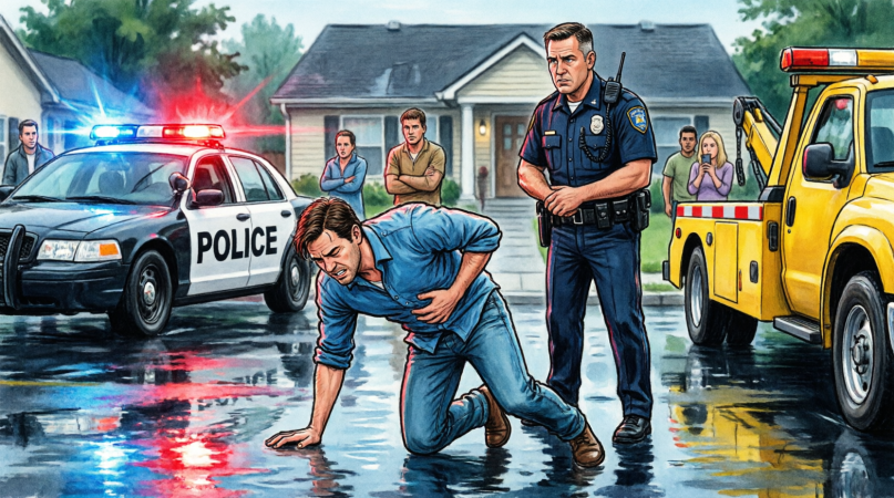 Two police cruisers pulled in. A third vehicle arrived a minute later—a tow truck, but not for us. It rolled slowly down the street like it already knew it was headed toward something dead.