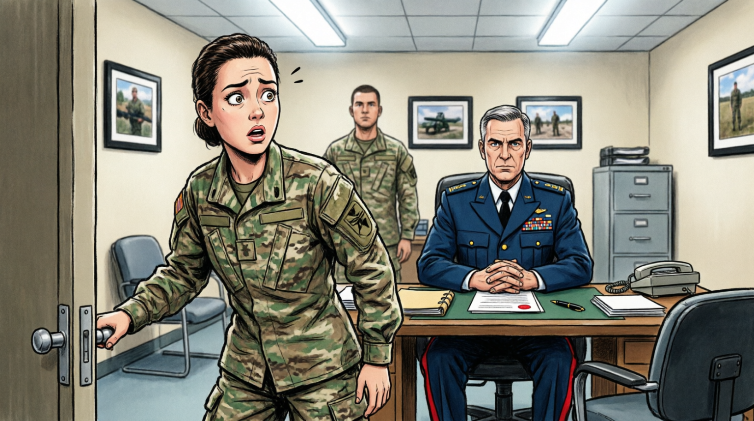 Career-ending paperwork often starts with a quiet meeting behind closed doors. The headquarters building stood near the center of the base. Clean brick walls. American flag snapping in the wind. Inside, everything smelled faintly of floor polish and old paper. The receptionist looked up when I entered. Corporal Harris. Yes, ma’am.