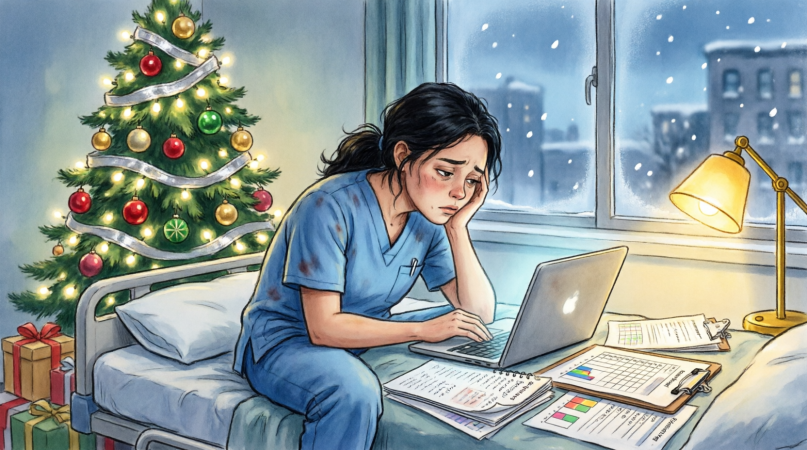 The room around me was dark except for the blue glow of the screen and the thin stripe of streetlight leaking through my blinds. I was still wearing my scrub top—wrinkled, faintly smelling of antiseptic and someone else’s fear—because I’d stumbled home from the hospital and collapsed on the bed without even making it. Twelve hours in the ICU had left my body buzzing in that strange way exhaustion does, where you’re so tired you can’t actually sleep.