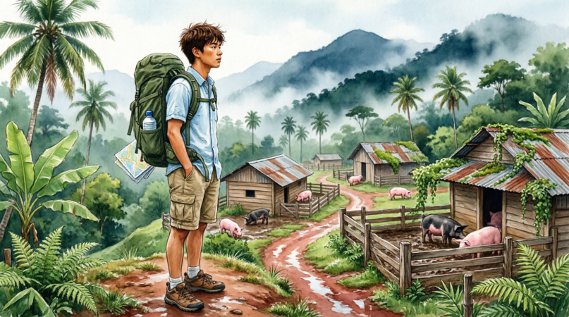 The next morning, he locked up the pigsty. He handed the key to the landowner, Mang Tino, and went down the mountain. He couldn’t bear to see everything he had built completely collapse. In his mind, it was all a loss.
