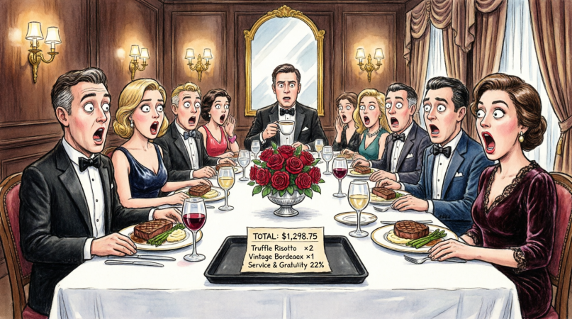 It started with Brandon. He slapped his menu shut with theatrical flair. “Wagyu,” he announced. “And lobster. Actually, make that two lobster tails. I’m celebrating.”