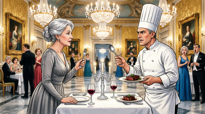 She turned to the waiter and added, raising her voice just enough to sound casual, but so everyone could hear, “We don’t provide extra food. Just water for her.”