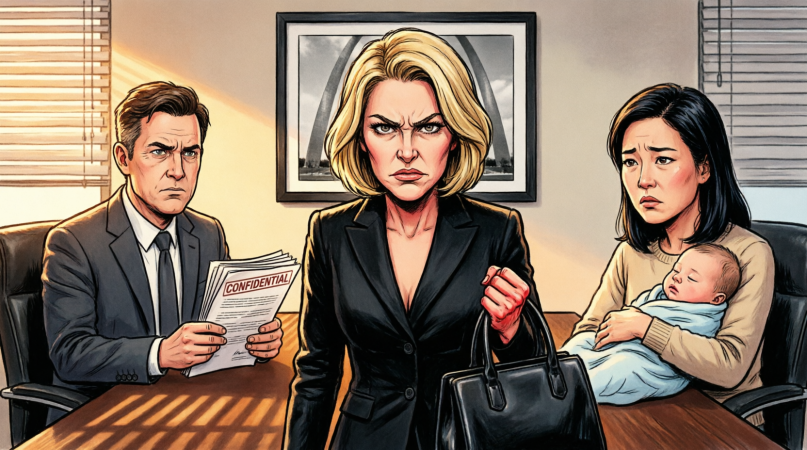 Two weeks after Margaret Caldwell’s funeral, I stepped into a conference room at Harlan & Pierce in downtown St. Louis, dressed in black and still heavy with grief. The air smelled faintly of stale coffee, and a crooked picture of the Gateway Arch hung behind the head of the table.