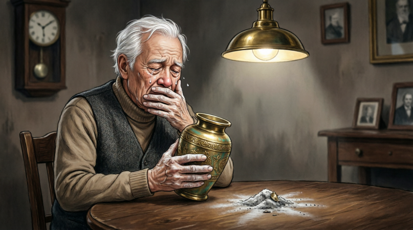 When I got home, the house was silent—the heavy, dust-mote silence of a widower’s life. I walked into the living room. On the mantle sat the brass urn.
