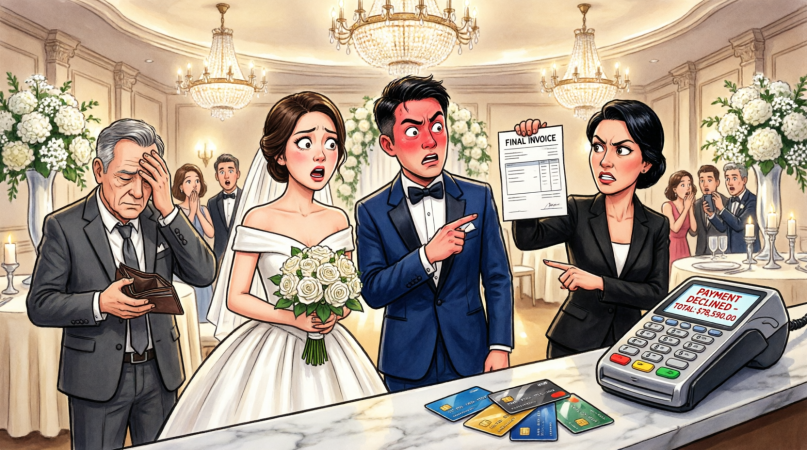 At first, I thought he was joking. Connor and Vivian had spent six months turning their wedding into a luxury spectacle—drone footage at the rehearsal dinner, monogrammed champagne walls, custom perfume favors flown in from Paris. Their florist alone probably cost more than my first car. So when Ethan said they couldn’t pay, I thought he’d lost his mind.