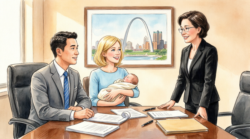 The room is too cold, the air carrying that stale blend of coffee, carpet cleaner, and paper that always seems to cling to law offices. The long mahogany table gleams under fluorescent lights. A framed print of the St. Louis skyline hangs slightly crooked behind the head chair, and for one absurd second you want to straighten it, because if one thing in this room can be corrected, maybe the rest can too.