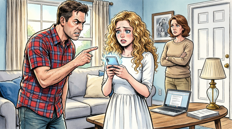 My mother appeared behind him, wringing her hands, eyes flicking between us. I waited for her to stop him. To say, That’s enough.